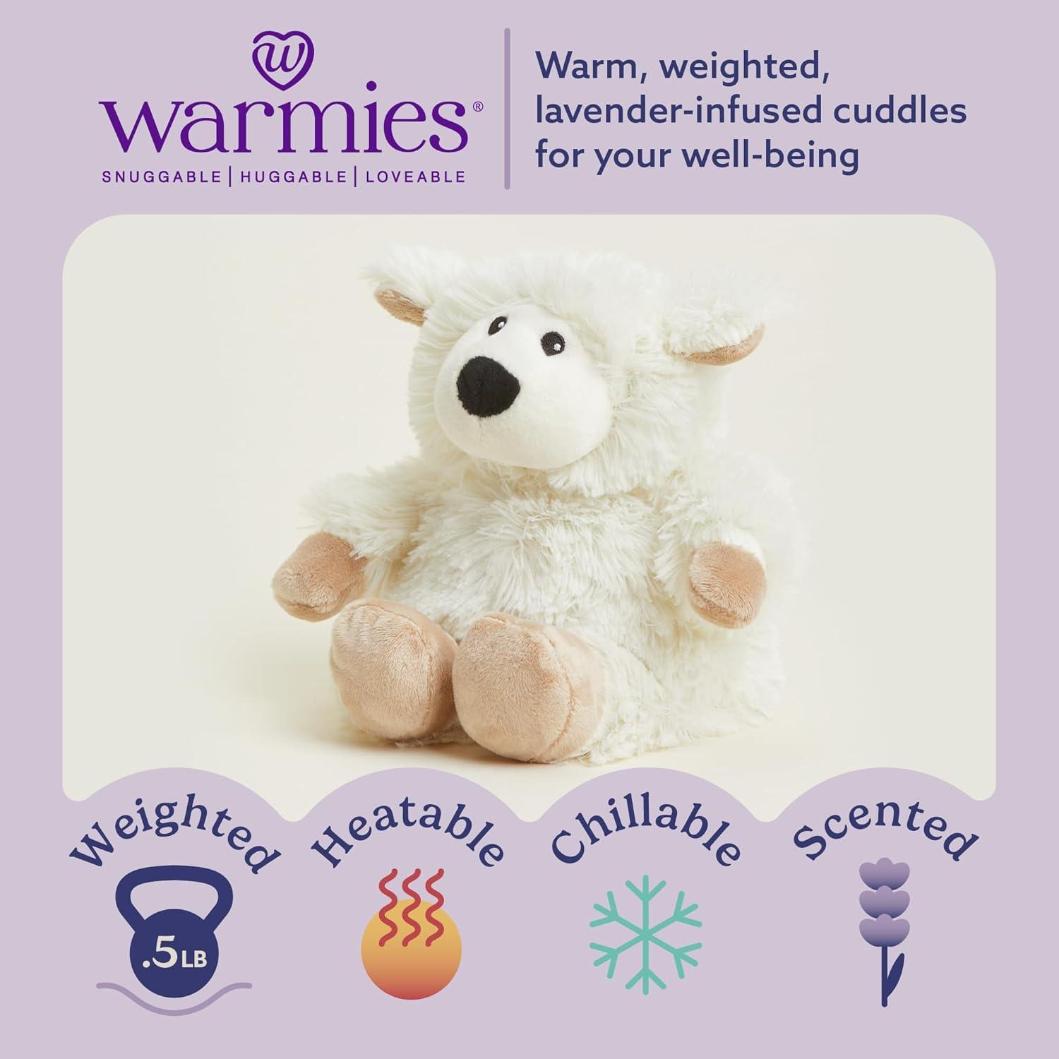warmies Junior Microwavable & Weighted Stuffed Animals, Sheep – Heated Stuffed Animal Plushie for Warmth & Comfort – Cute Soft Plush Toys for Adults & Children (Boys, Girls, Babies & Toddlers)