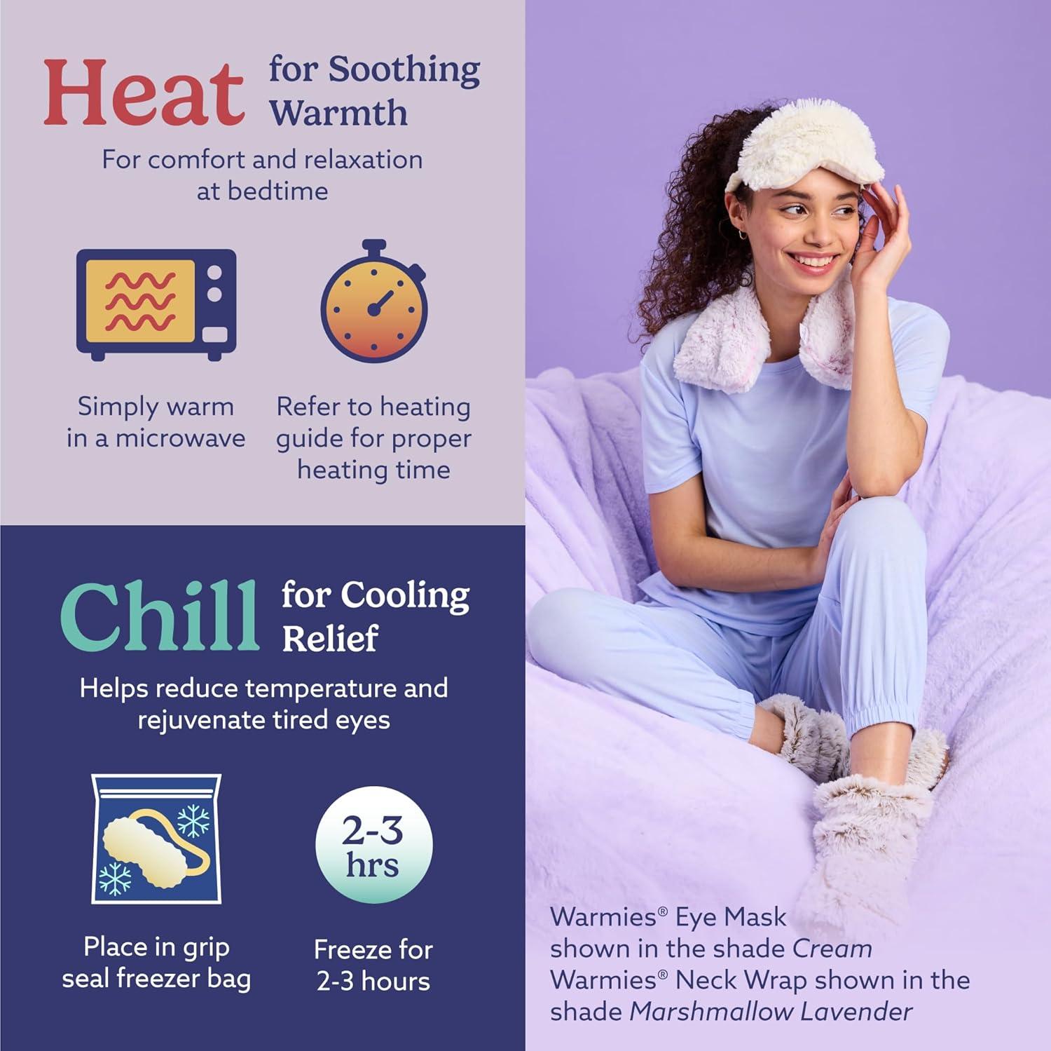 Warmies Eye Mask: This cozy Cream Warmies Eye Mask can be easily heated to provide up to two hours of soothing warmth and comfort, or chilled for a cooling sensation. Scented eye mask is one-size-fits-most. 0.5 lb.