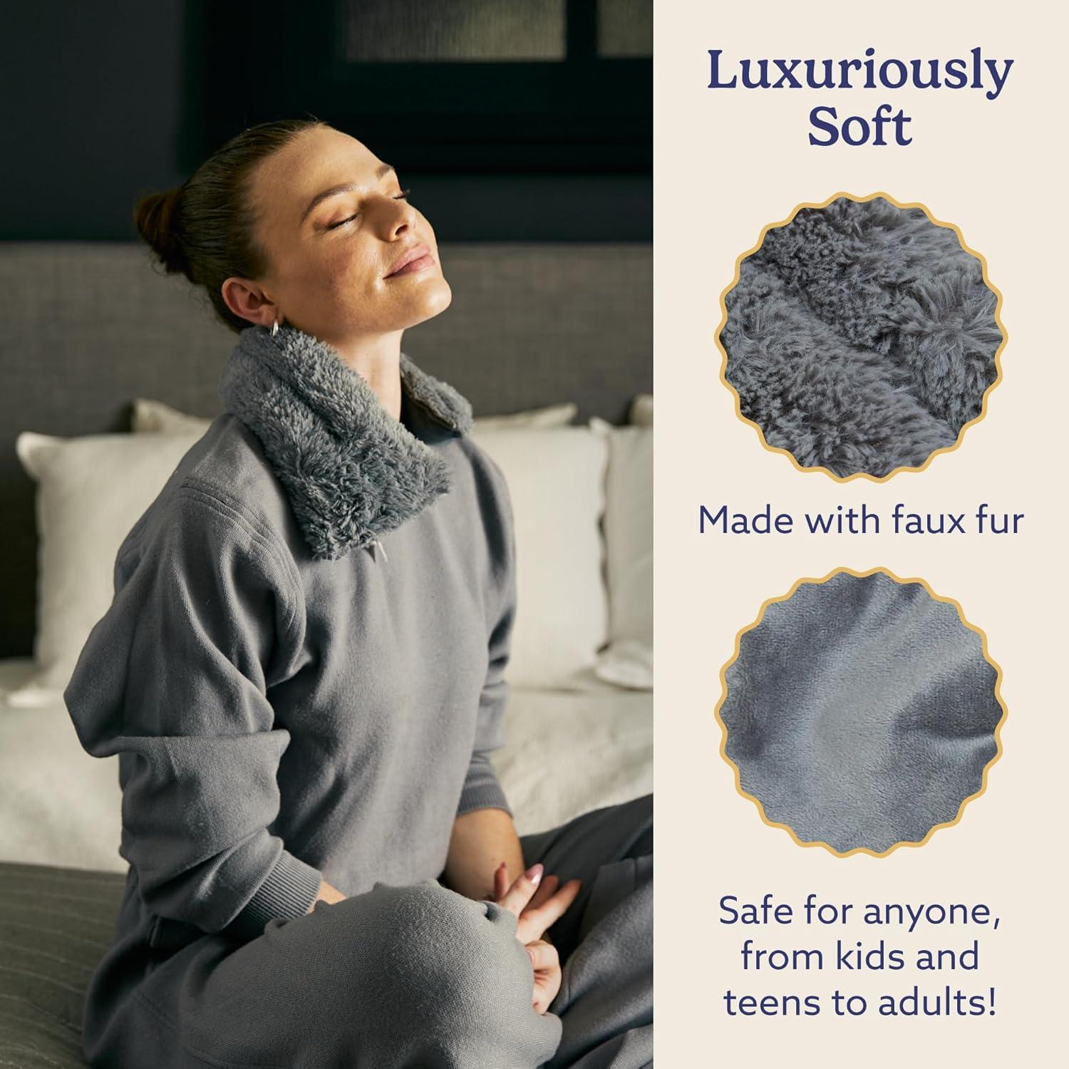warmies Microwavable Neck & Shoulder Wrap – Heating & Cooling Plush Pad for Calming Relaxation – Weighted & Heated Neck Warmer with Scented Lavender – Microwave Heat Pad for Aches & Pain – Gray(Gray)