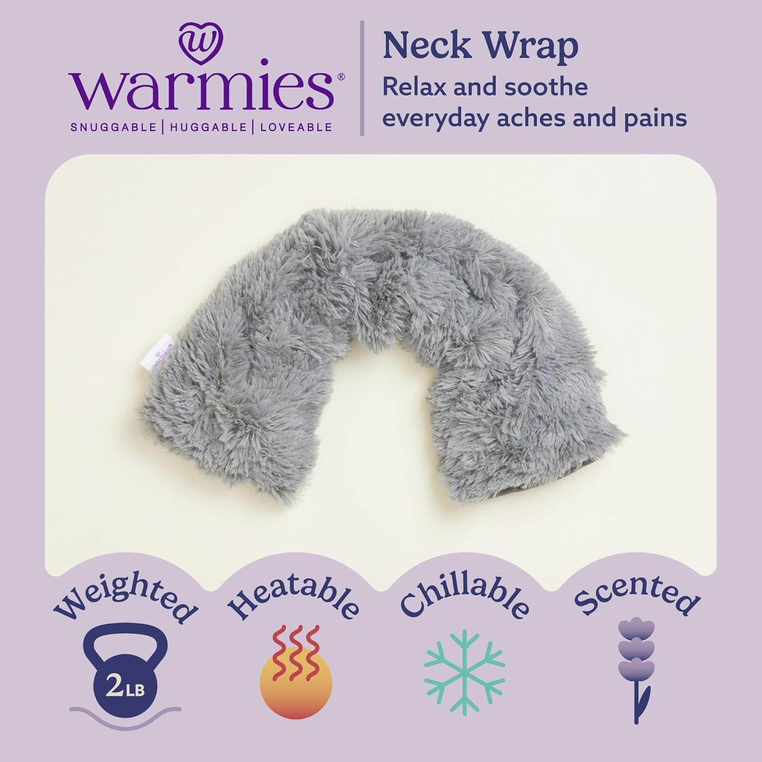Warmies Eye Mask: This cozy Gray Warmies Luxury Neck Wrap can be easily heated to provide up to two hours of soothing warmth and comfort, or chilled for a cooling sensation. Scented neck wrap is one-size-fits-most. 2 lbs.