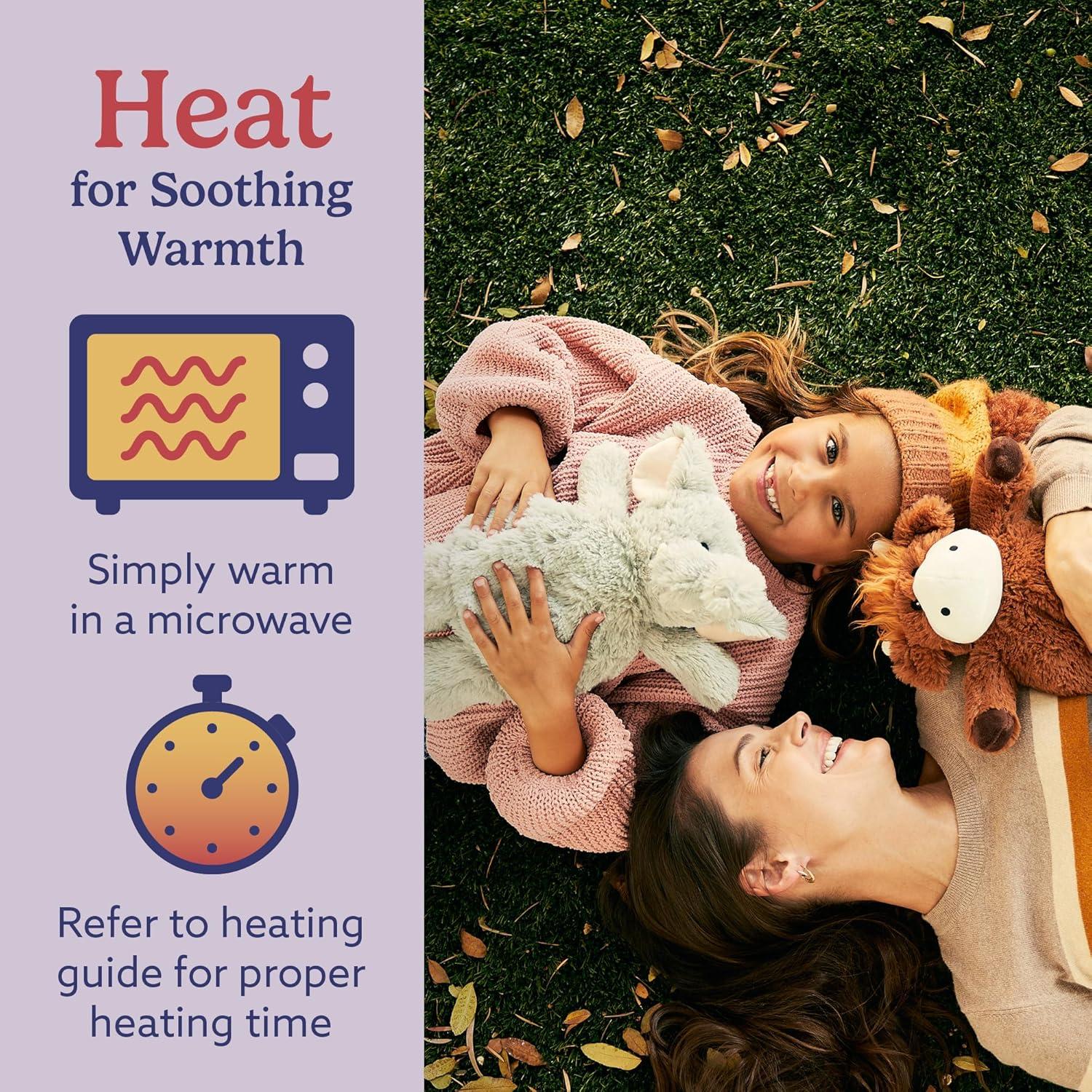 Heat Up for Soothing Warmth: Enjoy comforting warmth for your needs by heating your Warmies plush in the microwave for up to 90 seconds. Refer to the included heating guide for proper heating time.