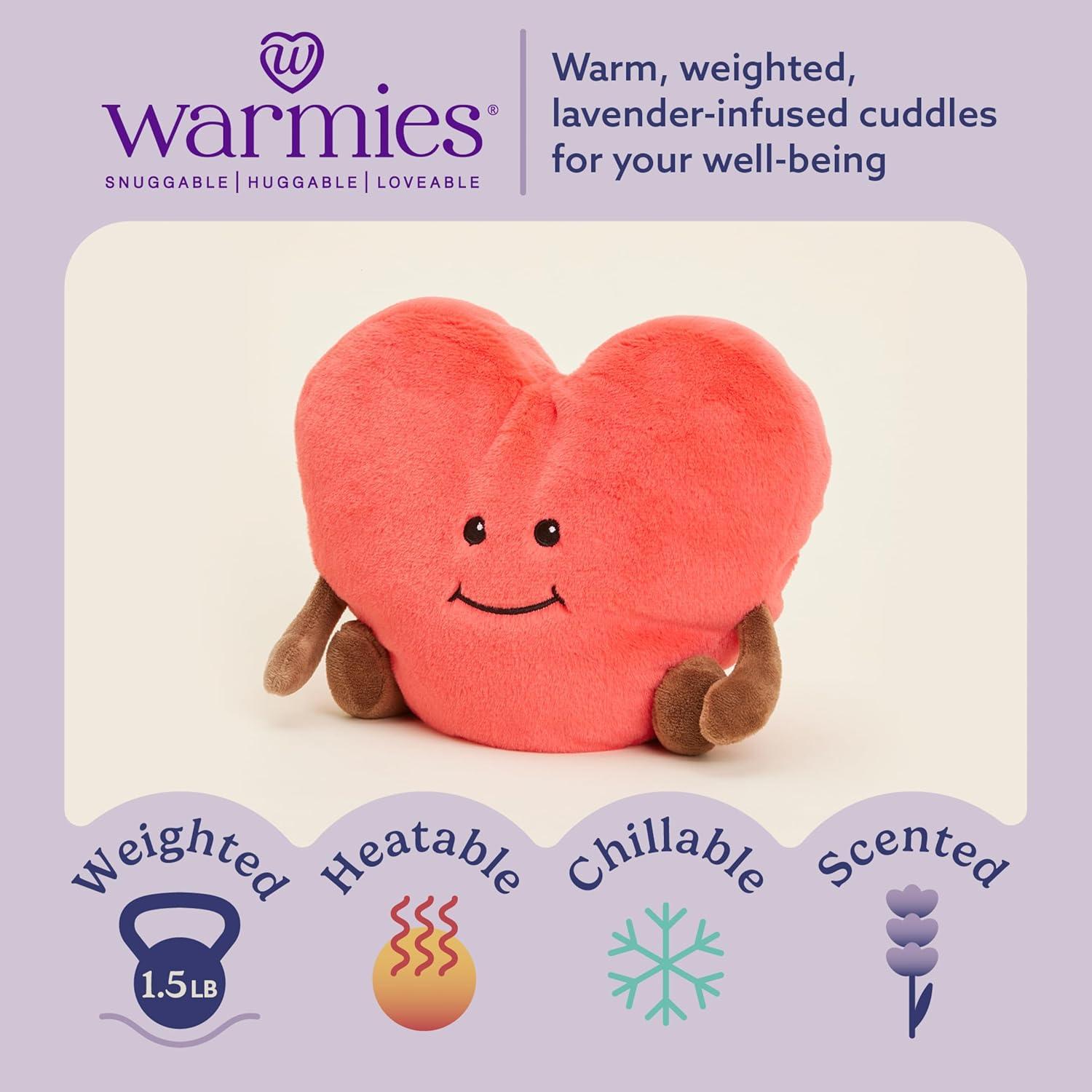 Warmies Microwavable Stuffed Animal: Heart is a snuggable, huggable, lovable weighted plush toy for all ages that can be easily heated to provide hours of soothing warmth or chill in the freezer for a refreshing cool touch. Perfect for comfort and snuggles. 13 inches tall, 1.5 lbs.