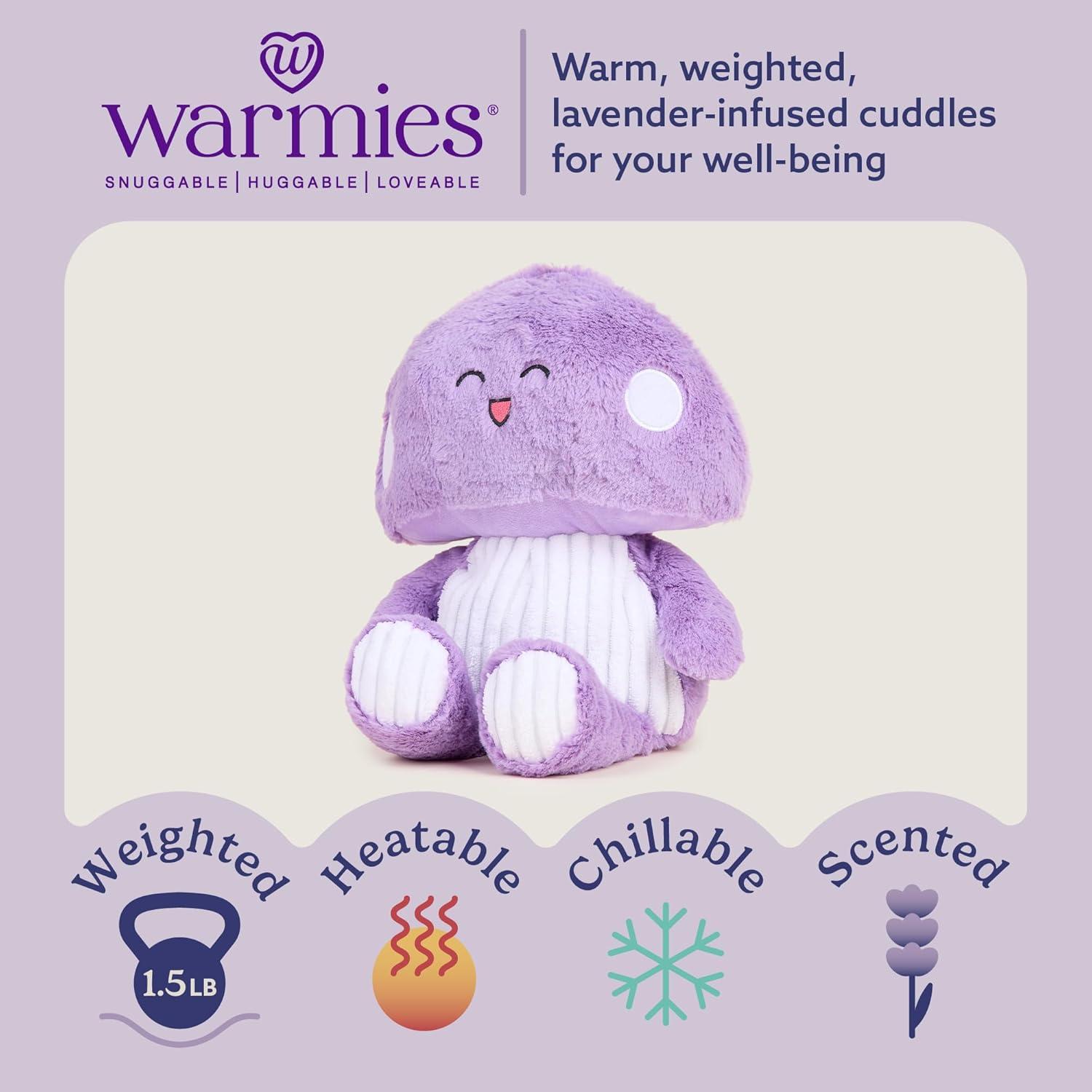Warmies Microwavable Stuffed Animal: Purple Toadstool is a snuggable, huggable, lovable weighted plush toy for all ages that can be easily heated to provide hours of soothing warmth or chill in the freezer for a refreshing cool touch. Perfect for comfort and snuggles. 13 inches tall, 1.5 lbs.