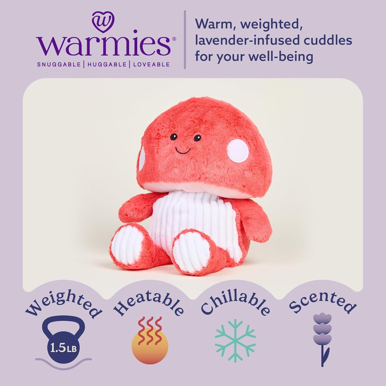 Warmies Microwavable Stuffed Animal: Red Toadstool is a snuggable, huggable, lovable weighted plush toy for all ages that can be easily heated to provide hours of soothing warmth or chill in the freezer for a refreshing cool touch. Perfect for comfort and snuggles. 13 inches tall, 1.5 lbs.