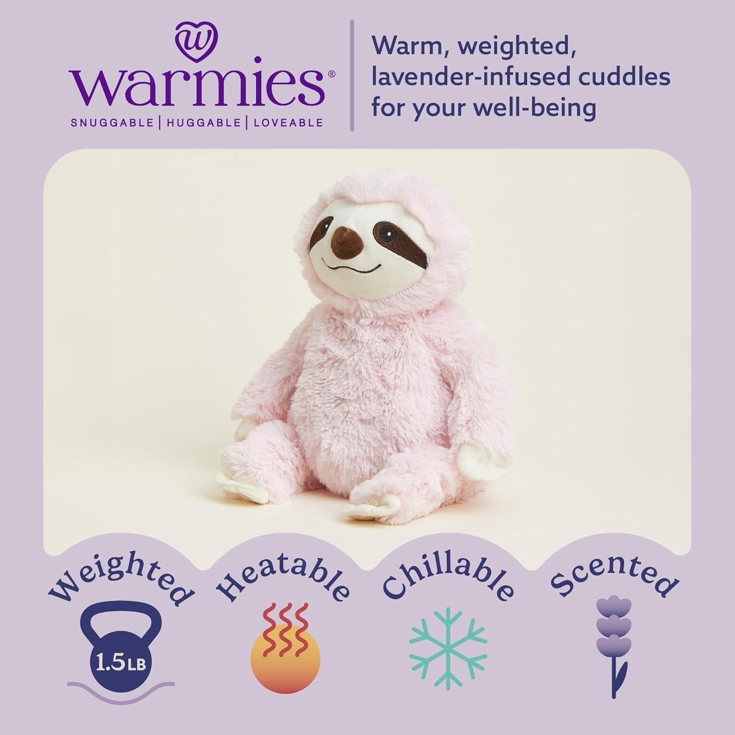 warmies Microwavable & Weighted Stuffed Animals, Sloth – Heated Stuffed Animal Plushie for Warmth & Comfort – Cute Soft Plush Toys for Boys, Girls, Babies & Toddlers(Pink)