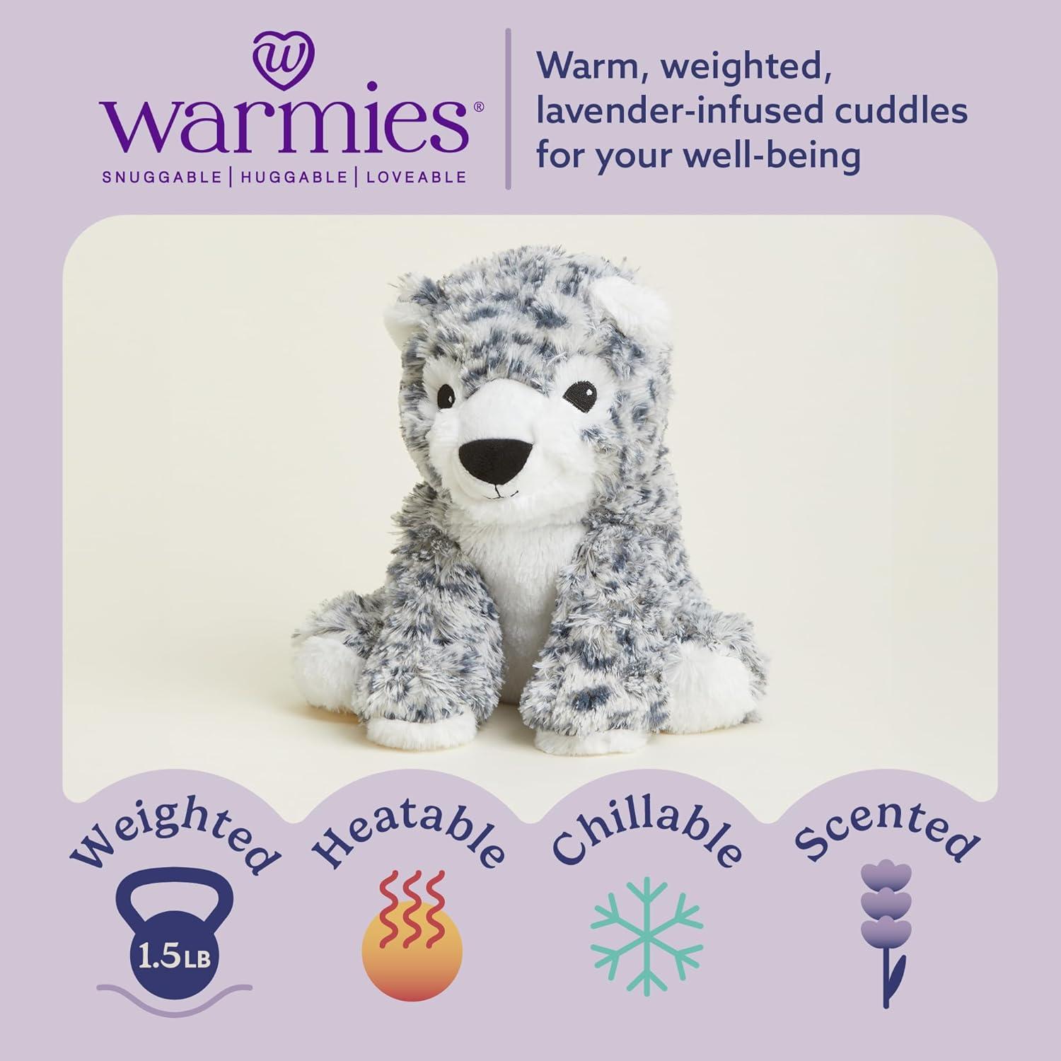 warmies Microwavable & Weighted Stuffed Animals, Snow Leopard – Heated Stuffed Animal Plushie for Warmth & Comfort – Cute Soft Plush Toys for Adults & Children (Boys, Girls, Babies & Toddlers)(Snow Leopard)