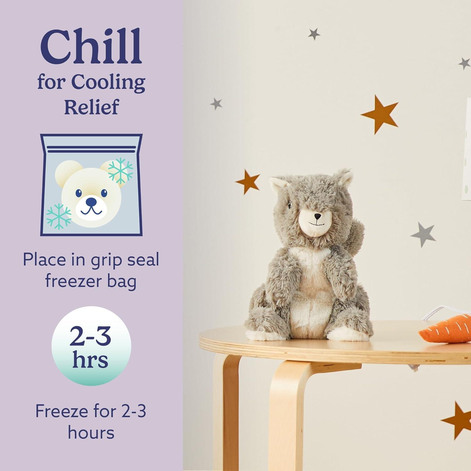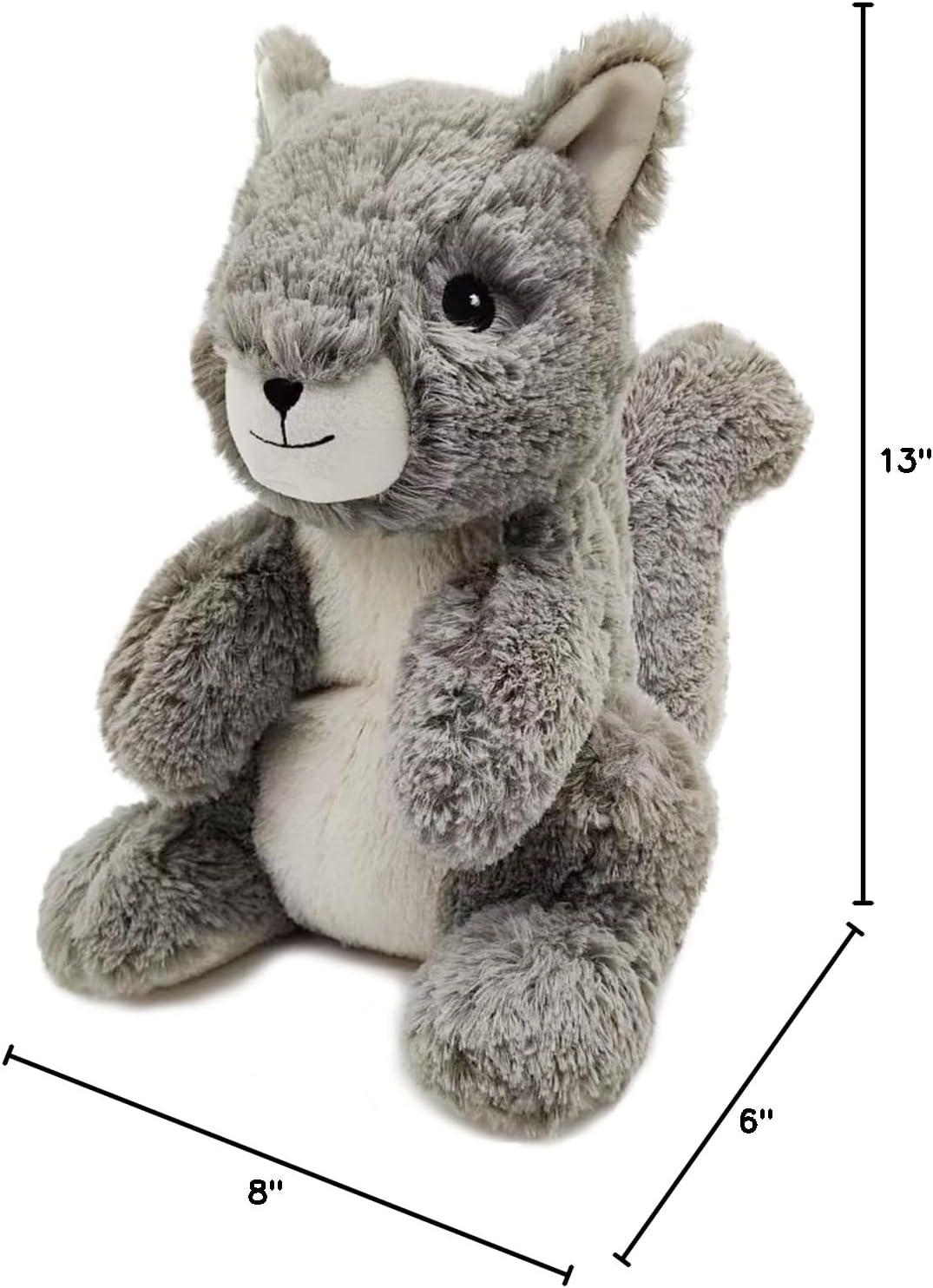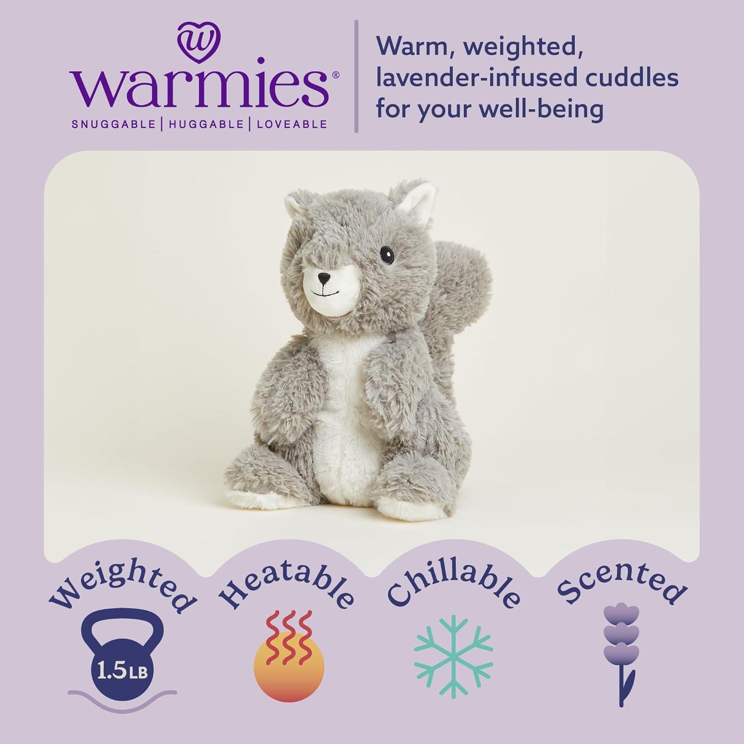 Warmies Microwavable Stuffed Animal: Squirrel is a snuggable, huggable, lovable weighted plush toy for all ages that can be easily heated for hours of soothing warmth and calming comfort or chilled to provide cooling relief. 13 inches tall. 1.5 lbs.