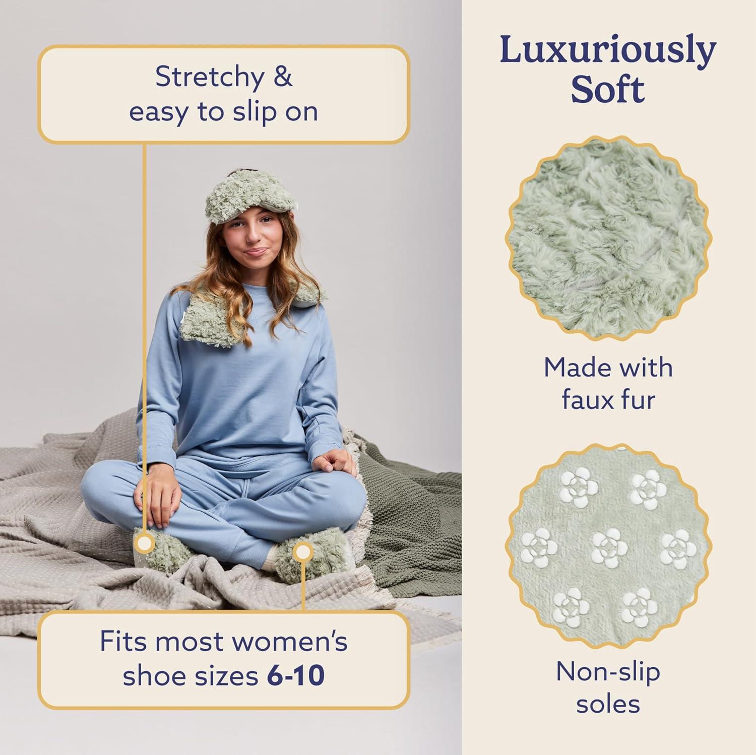 warmies Microwaveable House Slippers for Women – Womens Shoe Sizes 6-10 – Plush, Soft & Fuzzy Indoor Slippers with Backs & Non-Slip Memory Foam Soles – Cozy Warm Ladies Slipper for Winter – Gray(Curly Sage Green)