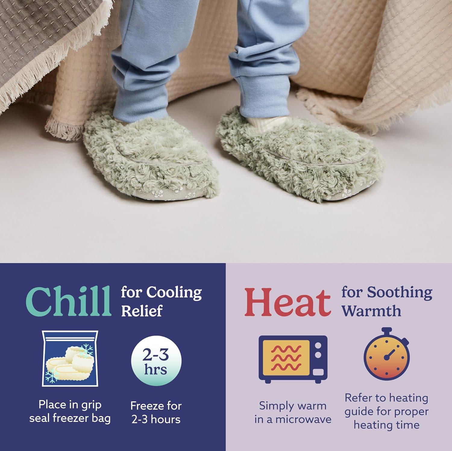 Heat Up for Soothing Warmth: Enjoy comforting warmth for tired, aching feet by heating your Warmies cozy slippers for up to 90 seconds. Refer to the included heating guide for proper heating time.