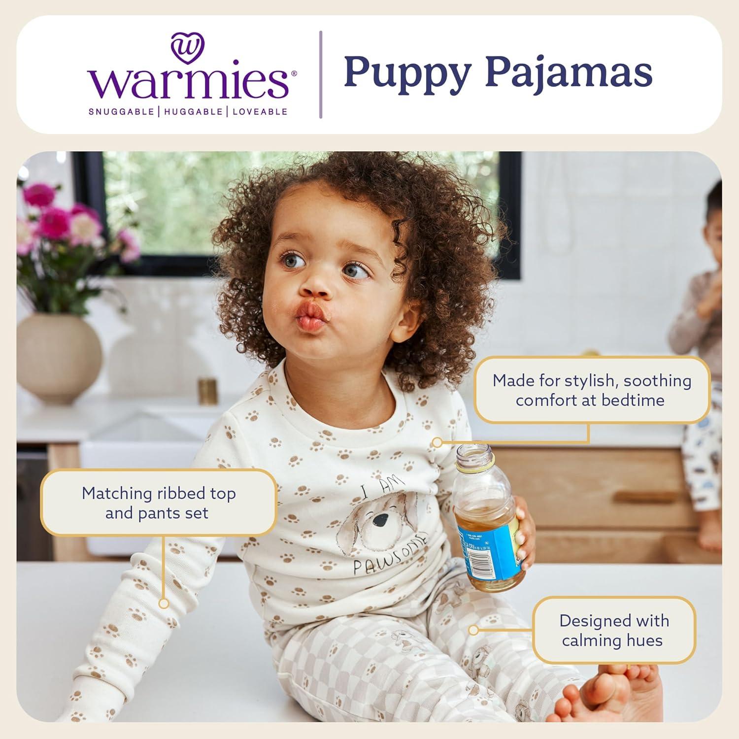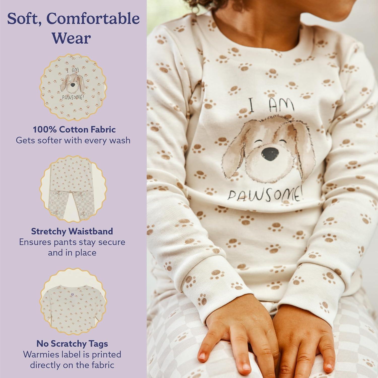 warmies Unisex Pajamas for Toddler Boys & Girls – 100% Cotton Fabric Children Sleepwear – Puppy Animal Print Pattern White